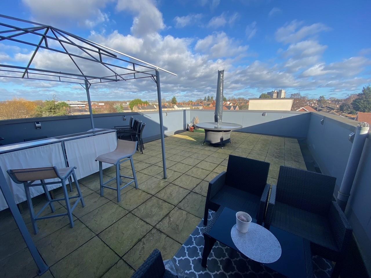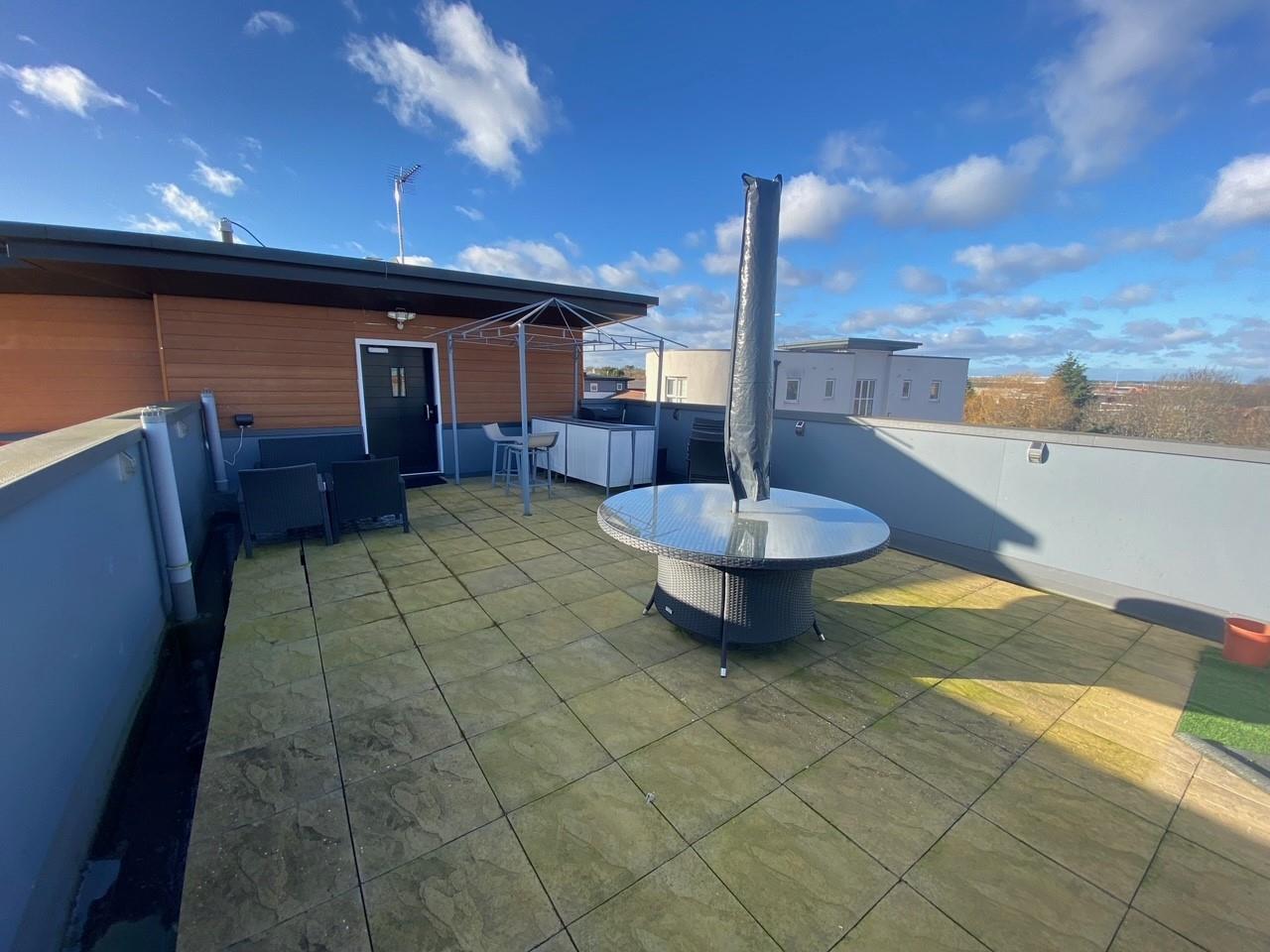 A ground floor apartment comprising entrance hall, open plan lounge/diner/kitchen with integrated appliances, master bedroom with en suite, second single bedroom/office, bathroom, enclosed patio area directly accessed from the property and an allocated parking space. There is also a communal rooftop terrace for the occupants of the block to enjoy.